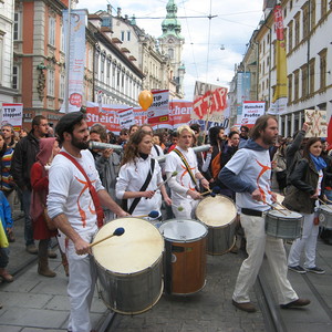 Unter den 1800 TeilnehmerInnen in Graz nahmen auch VertreterInnen der Katholischen Aktion, der Dreikönigsaktion, Welthaus und engagierte ChristInnen an der Demonstration teil. "Gegen den Fetischismus des Geldes und das Diktat der Wirtschaft ohne ein wirklich menschliches Ziel": (Papst Franziskus in Evangelii Gaudium)
