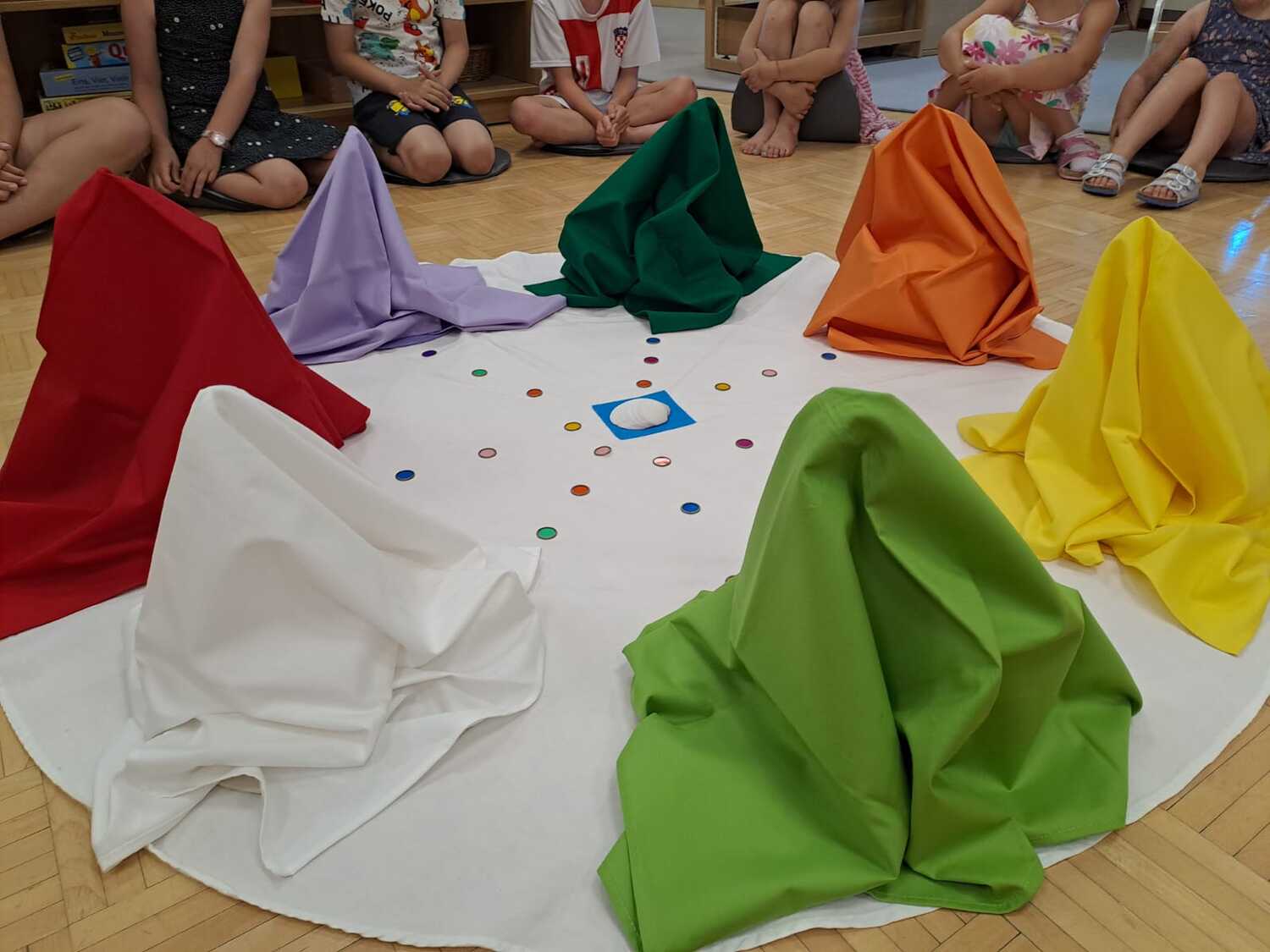 Im Morgenkreis begrüßen wir einander und beginnen den Tag gemeinsam. Hier werden Lieder gesungen, Geschichten erzählt und der Kalender tagesaktuell eingestellt.