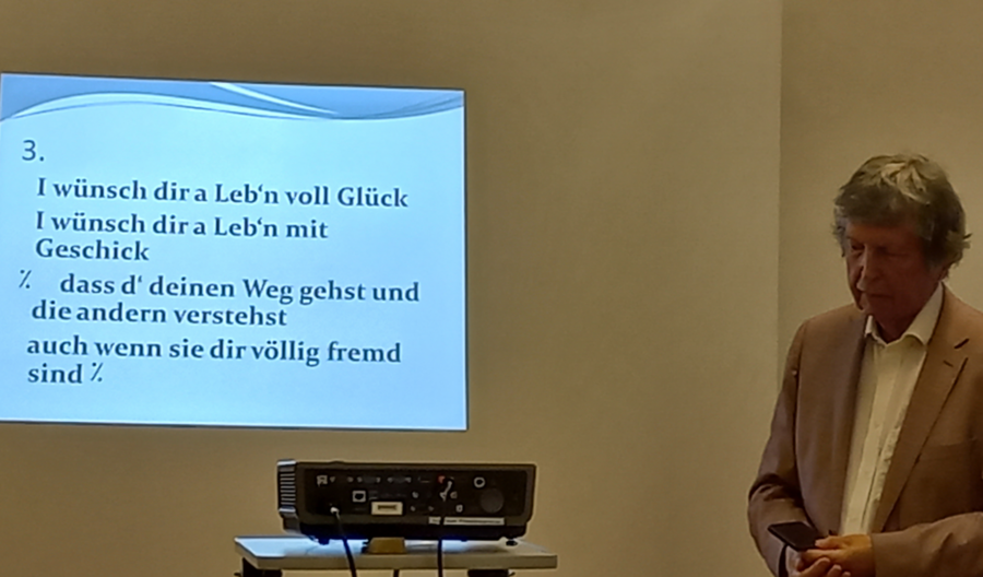 Am Folgetag lud Arnold Mettnitzer schließlich 20 Teilnehmende im Rahmen eines stärkenden Intensivseminars ein, dem Wesen und der Schönheit der Reife, ihrer unterschiedlichen Gesichter und ihrer farbenfrohen Schattierungen näher auf die Spur zu kommen. Den liebevollen Blick auf das Älterwerden gerichtet, ermutigte er, immer mit Bezug zur jeweils persönlichen Lebensgeschichte, dazu, die „gute Stunde“, die glücklichen Augenblicke zu pflegen und sich für sie offenzuhalten! Im gemeinsamen intensiven Gespräch und mithilfe literarischer Impulse – insbesondere einem Textauszug aus ,Über die Dörfer‘ von Peter Handke – wurde klar: In jedem Momente des Lebens kann das Überraschende eintreten, das „frischen Wind“ in den Alltag bläst und Freude und Zuversicht mitbringt, denn: „Unser Herz hat eine unerschöpfliche Sehnsucht nach Weltpremieren!“