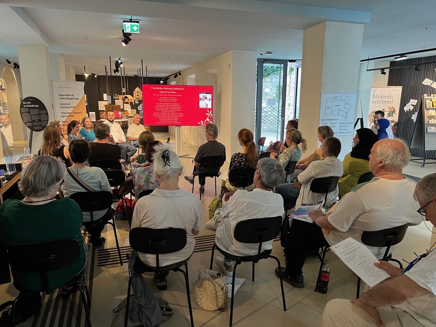 Zahlreiche an interreligiösem Dialog Interessierte waren – trotz starker Konkurrenz durch die Fußball-EM! – an diesem warmen Sommerabend des 26. Juni 2024 der Einladung zu ,Tea & Talk‘ in das Volkskundemuseum am Paulustor gefolgt, um gemeinsam mit den Vertreter:innen der fünf großen Religionsgemeinschaften den Blick auf das Friedenspotenzial der Religionen sowie konkrete Friedensinitiativen zu richten.