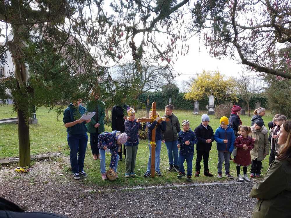 Gemeinsam mit ihren Familien machten sie sich auf den Weg und gestalteten die einzelnen Stationen aktiv mit. Dabei wurde gezeigt, wie sich die Erfahrungen aus dem letzten Weg Jesu auch in unserem eigenen Leben widerspiegeln. Die jungen Teilnehmerinnen und Teilnehmer