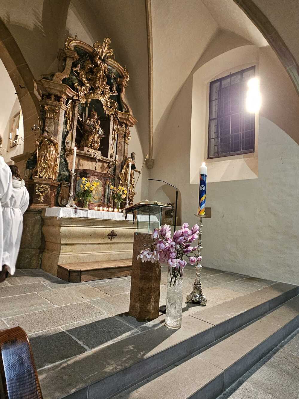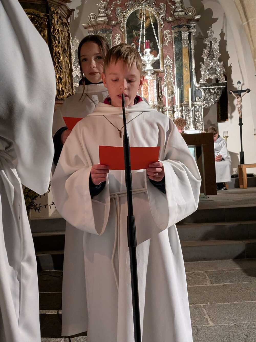 Der Chor unter der Leitung von M. Mikulik gestaltete die Feier musikalisch und verlieh der Liturgie eine besonders festliche Atmosphäre. Als Kantor fungierte Valentin Zwitter jun., der uns auch am Karfreitag mit wunderschönen Gesang berührt hat, begleitet wurde er dabei von befreundeten Studenten/innen.
