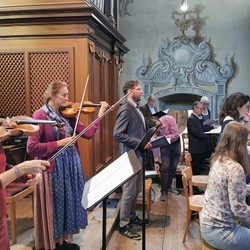 Wir konnten die „Missa in B“ (KV 275) von Wolfgang Amadeus Mozart wie geplant zur Aufführung bringen, allerdings in stark verkleinerter Besetzung: ungefähr der halbe Chor musizierte zusammen mit dem Solistenquartett Birgitta Wetzl, Elisabeth Weber, Markus Sölkner und Ewald Nagl das schwungvolle Werk in Begleitung eines Streichtrios unseres Orchesters und mit Christina Eichberger an der Orgel. Die feiernde Gemeinde und wir Ausführende selbst hatten große Freude an den schon so lange vermissten feierlichen Klängen einer Chor-Orchester-Messe!