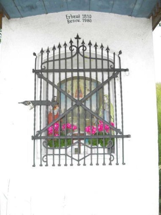 Das Gnadenbild im Sigl-Kreuz ist von zwei farbenprächtigen Maria- und Jesus-Statuen flankiert und die Nische ist mit einem kleinen Holzkreuz, Blumenstöcken und Kerzen liebevoll geschmückt. Neben dem Sigl-Kreuz steht eine gemütliche Holzbank, die zum Verweilen und Besinnen einlädt.