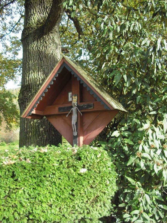 Auf dem Weg nach Pfannberg, an der Abzweigung zum Gut Pichlhof, steht ein rötliches Wegkreuz aus Holz mit einem Kruzifix, der künstlerischen Darstellung des gekreuzigten Christus. Das Kruzifix (lat. „ans Kreuz geheftet“) ist Sinnbild für das Opfer Christi, das dieser zur Erlösung der Menschheit gebracht hat.
