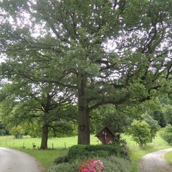 Ursprünglich stand dieses Zeichen des Glaubens in der Nähe der Ruine Pfannberg. Im Auftrag der Familie Mayr-Melnhof-Saurau wurde dieses im Gedenken an den in Italien bei einem Autounfall verunglückten und am 14. Juni 1993 in München verstorbenen Baron Dr. Franz von Mayr-Melnhof-Saurau (geboren am 22. Februar 1949 in Wien) unter einer mächtigen Eiche am Pichlhof aufgestellt. Davon zeugt eine am Glaubenssymbol angebrachte Parte:
