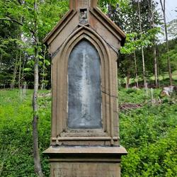 Unterhalb des Anwesens steht ein ansprechendes Kleindenkmal. Es wurde bereits 1872 unweit der Ruine Pfannbergerrichtet und ist dem Heiligen Josef geweiht. Nach Überlieferung soll dieses Kreuz an die Genesung einer Gräfin erinnern, die gerne in dieser ruhigen Gegend spazieren gegangen ist. Das geht auch aus der Inschrift hervor, die im Sockel eingemeißelt ist: