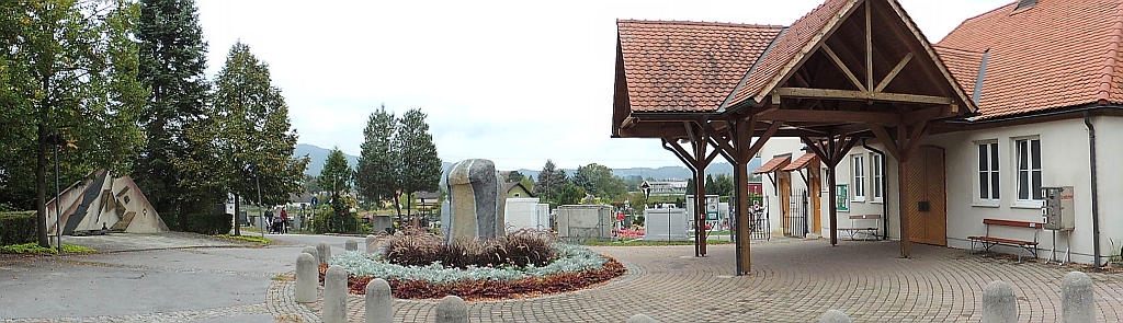 Nach dem Verlust eines lieben Menschen kommt dem Friedhof ein wichtiger Teil in der Trauerarbeit zu. Hier kann man die Verbundenheit mit den Verstorbenen aufrechterhalten und der schönen gemeinsam verbrachten Zeit aber auch schwerer Stunden der Bitterkeit und des Schmerzes gedenken. Am Friedhofvorplatz steht im Zentrum der Stein der Trauer und die Aufbahrunghalle drängt sich mit offenem Flugdach zu diesem Stein hin. Das Wasser, das über diesen Stein der Trauer herabfließt, symbolisiert die Tränen des Abschieds und der Trauer. (Errichtet 1992: Brunnen der Trauer und Brunnen der Tröstung: Künstler Fred Höfler, Architekt DI Wigand) Als Gegenpole zum Vorplatz der beiden Friedhofsteile, steht dort jeweils ein Kreuz im Zentrum. Hier möchten wir auf das ungewöhnliche Kreuz im Gemeindefriedhof hinweisen. Diese Kreuzesdarstellung kann in schweren Stunden Trost spenden.