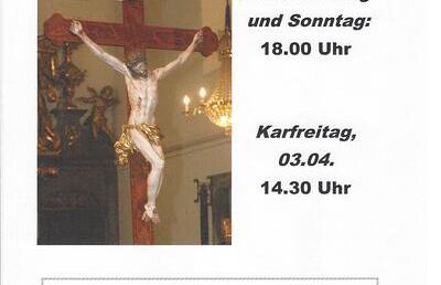 Wir feiern in der Fastenzeit jeden Freitag und Sonntag um 18.00 Uhr die Kreuzwegandacht. Am Karfreitag, 3. April Kreuzwegandacht um 14.30 Uhr.
