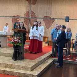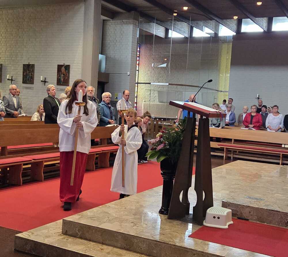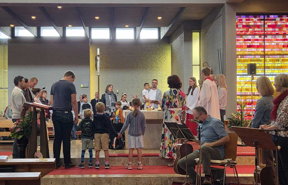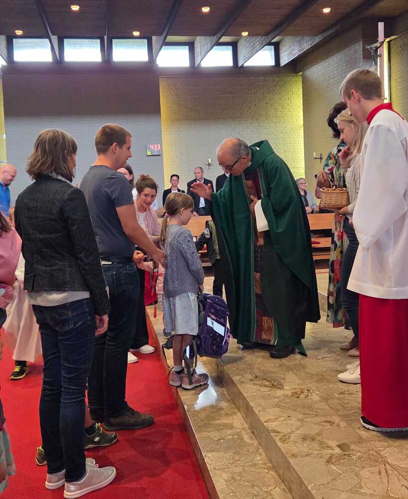 Gesegnet und gestärkt konnten die Gottesdienstbesucher:innen das neue Schul- und Arbeitsjahr beginnen. Alle Kindergarten-, Schultaschen, Unirucksäcke, Laptoptaschen...und Koffer wurden mit ihren Besitzer:innen mit dem Segen Gottes und dem Wissen "Ich bin nicht allein" begleitet. Als Erinnerung daran wurden kleine Segens- und Stärkungssymbole verteilt. Tina Schörgi lud alle ein wieder mehr zu segnen, was jede und jeder darf, und den Mitmenschen Gutes zu wünschen: durch ein Kreuz auf die Stirn beim Gute Nacht sagen, beim Anschneiden eines Laib Brotes, beim Abschied mit Weihwasser.... Alle Kinder erhielten kleine Weihwasserfläschchen und die Erwachsenen die Erinnerung, dass wir "Gott befohlen" sagen, wenn wir "tschüss" sagen, das vom französischen a dieu kommt oder "God be with you" beim Gruß "bye, bye". Ein gemischter Chor hat die Feier wunderschön musikalisch gestaltet.