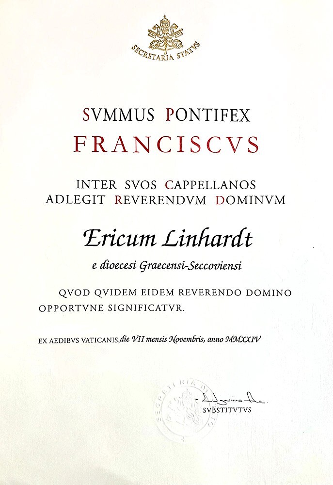 Päpstliche Ehrentitel werden kaum mehr vergeben – umso stolzer dürfen neue Träger sein. Eben wurde Erich Linhardt, seit 2015 Generalvikar der Diözese Graz-Seckau, ausgezeichnet – als „Kaplan seiner Heiligkeit“ und damit „Monsignore“.