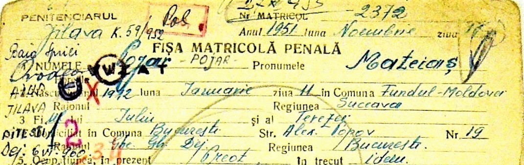 Ich, Unterzeichneter Matthias P o ž a r, bin an der St.-Josefs-Kathedrale zu Bukarest als Seelsorger angestellt gewesen. Nachdem mein Pfarrer Msgr. Josef Schubert im Februar 1951 und mein Mitarbeiter Johann Baltheiser im Mai 1951 verhaftet wurden, kam auch ich an die Reihe. – Ich wurde am 12. Juli 1951 ins Kultus-Ministerium gerufen von H. Direktor Johann Gertl. Als ich nach einem kurzen Aufenthalt bei ihm auf die Straße ging, wurde ich von zwei Sicherheitsbeamten gepackt und abgeführt. Zuerst wurde ich in einem Keller untergebracht. Nach 12 Uhr mitternacht wurde ich von einem Offizier per Auto in die Kellerräume des Innenministeriums abgeführt.